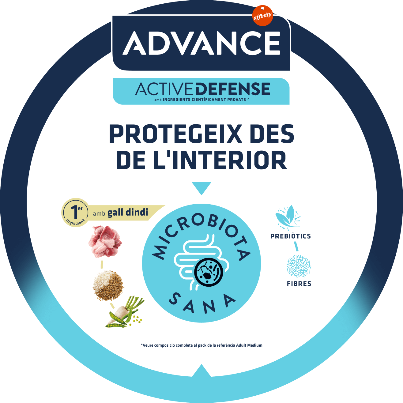 És on viuen bilions de microorganismes vius (en gran part, bacteries beneficioses) que formen la microbiota intestinal, una barrera de defensa fonamental. Una microbiota intestinal sana ajuda a reforçar les seves defenses i a mantenir-lo protegit des de l'interior.