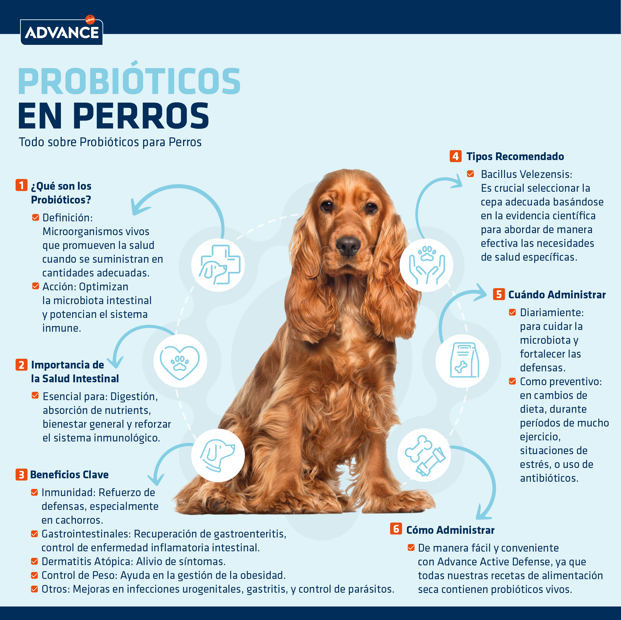 Ahora que conoces todo lo que debes saber sobre los probióticos para perros, haremos un breve resumen para finalizar. Como hemos visto, la administración de probióticos en perros es cada vez más habitual debido a sus efectos beneficiosos, tanto a nivel gastrointestinal como sistémico, que demuestran los estudios. Puedes administrarle probióticos a tu perro si presenta alguna patología gastrointestinal. Pero también puedes hacerlo si está sano, ya que se ha demostrado que los probióticos mejoran la salud del sistema gastrointestinal en perros sanos. Además, aumentan la inmunidad frente a futuras infecciones. Si tienes duda, consulta con su veterinario, aunque ten en cuenta que los probióticos para perros se administran mediante suplementos o en su alimentación del día a día, que incorporan microbióticos en su formulación, como la nueva gama Active Defense de ADVANCE.