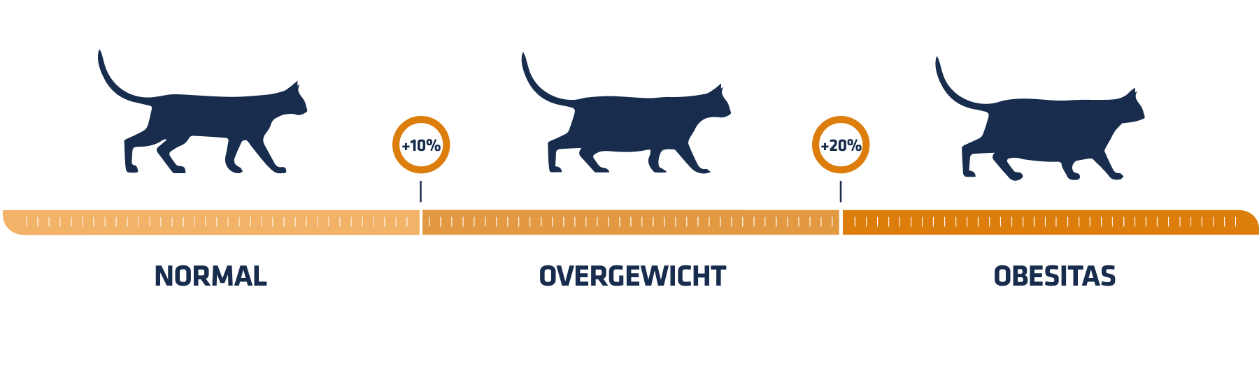 Wanneer een kat minstens 10% boven zijn ideale gewicht zit, is hij te zwaar. Is dit meer dan 20% dan kan hij zelfs zwaarlijvig zijn.